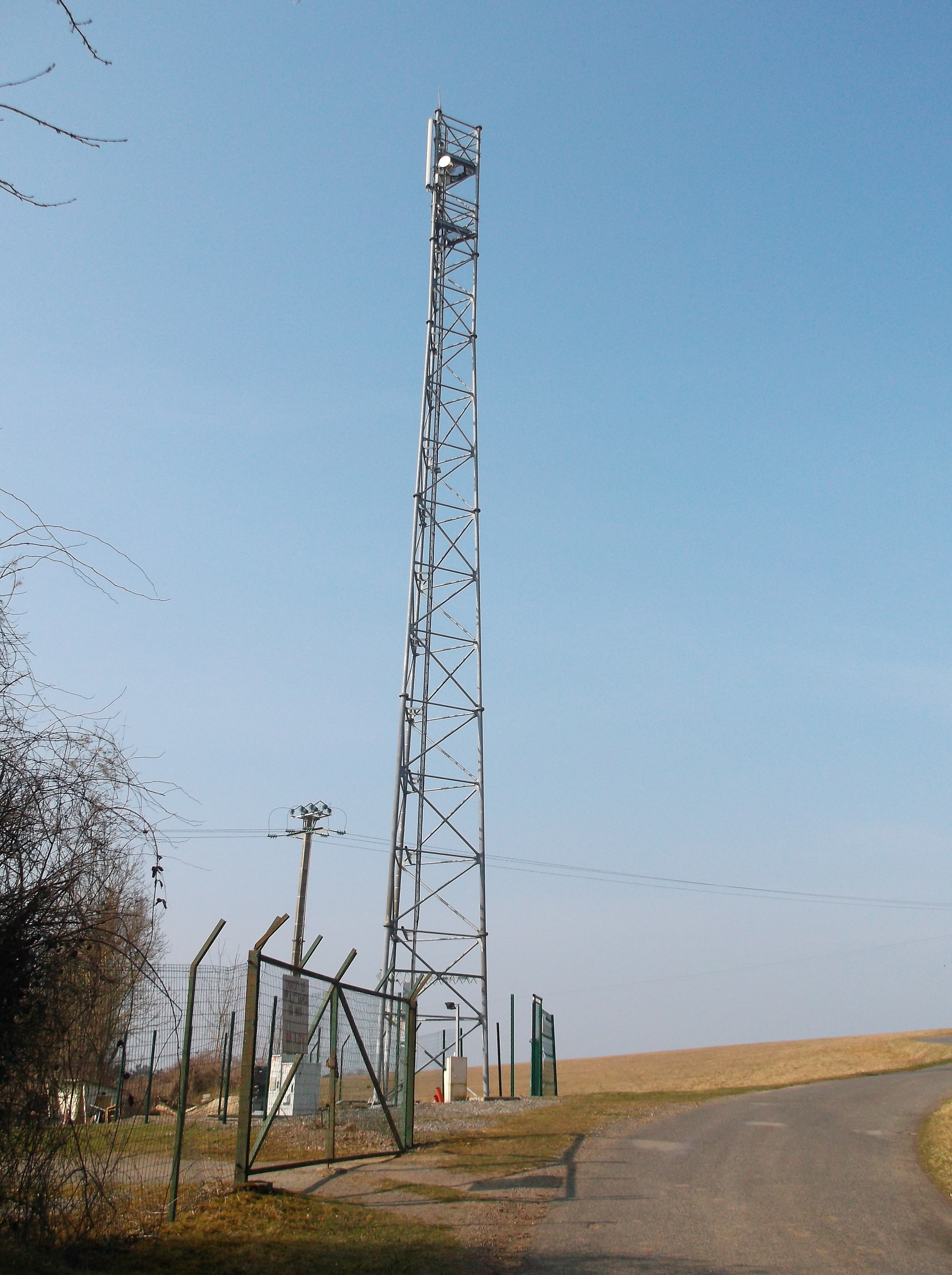 d’un pylône porteur d’antennes de téléphonie mobile pas très loin de la route de